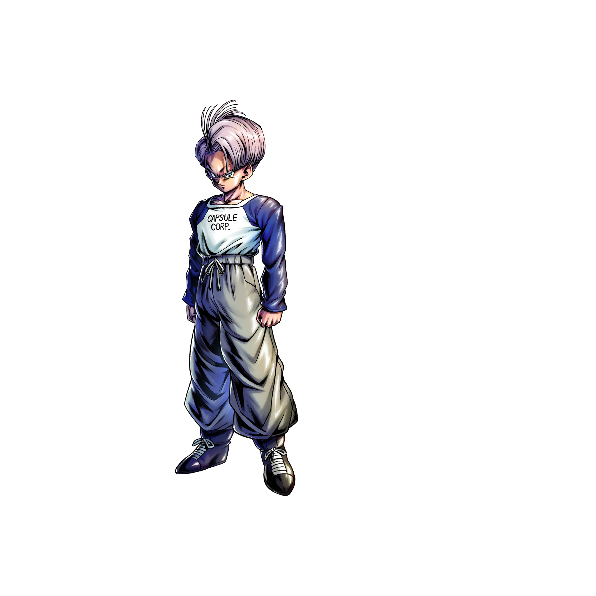 Infunde los siguientes efectos propios al comienzo de la lucha o cuando el personaje entra con un relevo: · Daño infligido +80% (inamovible) · Daño recibido -40% (inamovible) · Daño de energía infligido +20% (inamovible) · Velocidad de regeneración de ki +50% (inamovible) El efecto se reinicia con un relevo por Trunks chico