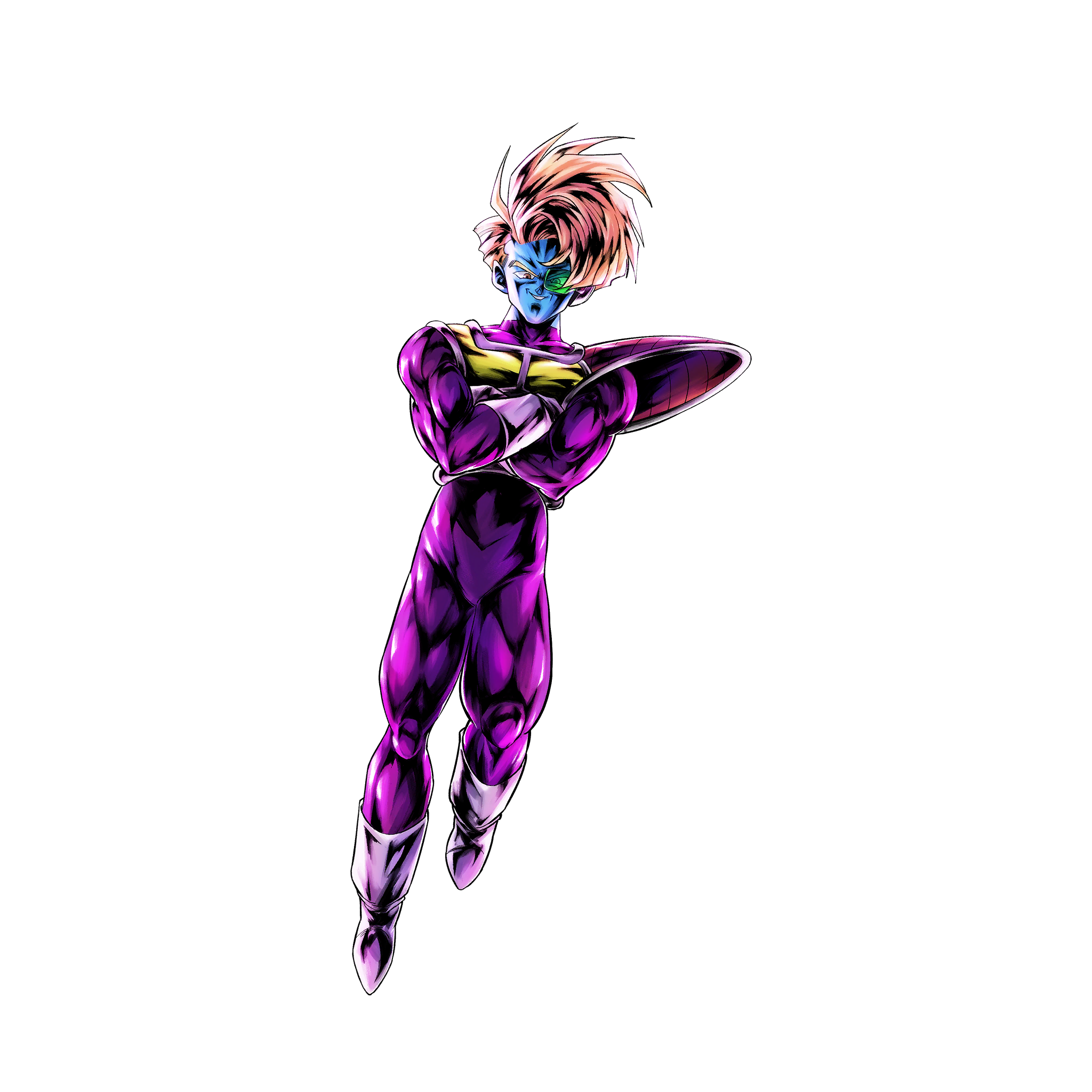 Infunde los siguientes efectos propios al comienzo de la lucha: · Daño infligido +70% (inamovible) · Daño recibido -50% (inamovible) Infunde los siguientes efectos al entrar en la lucha: · Roba carta de destreza singular (una vez) · Daño físico infligido propio +40% (15 s) · Velocidad propia de regeneración de ki +60% (15 s) · Ki -30 para el enemigo Además, roba un máximo de dos cartas al azar cuando tienes tres cartas o menos si hay algún luchador Cooler