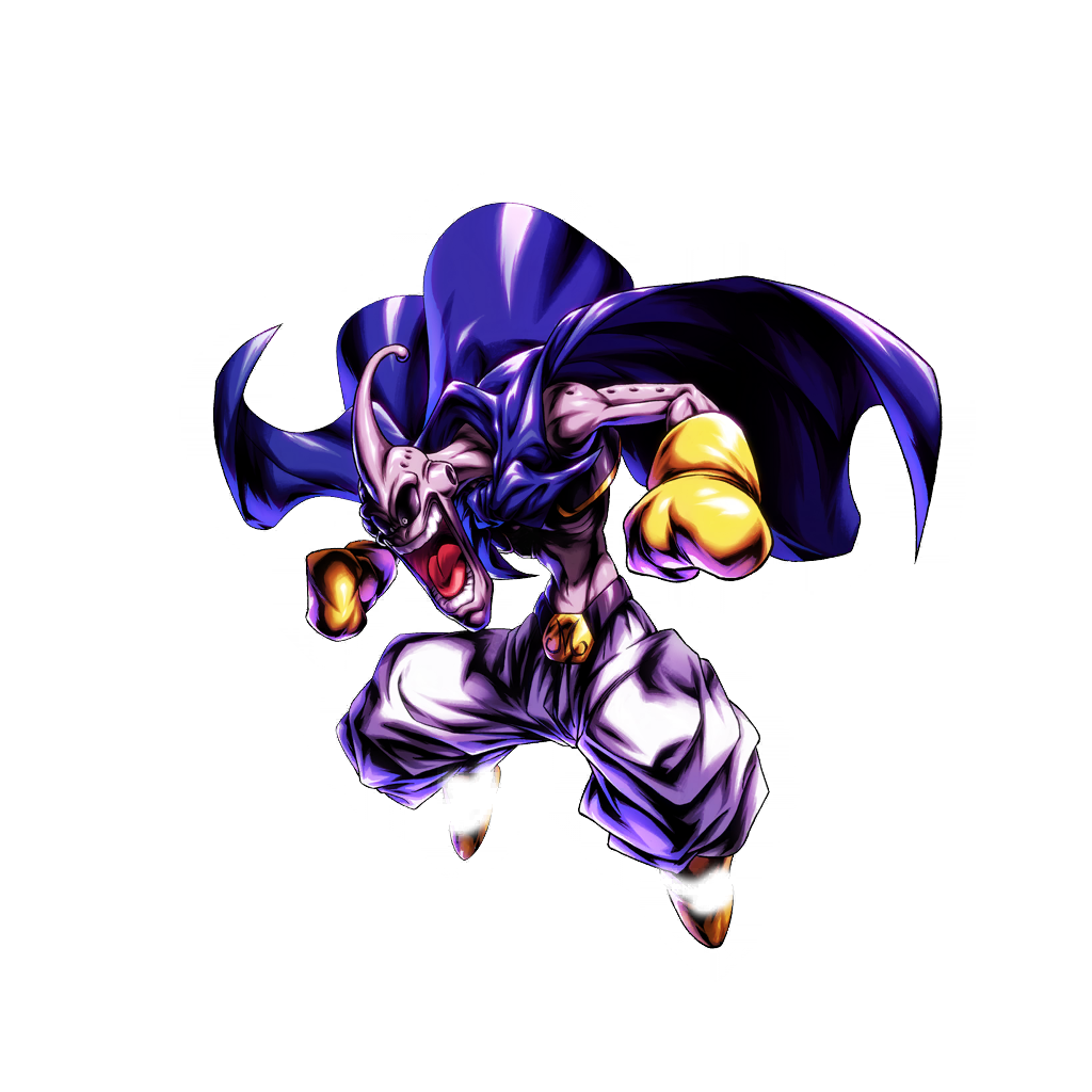 Infunde los siguientes efectos propios al comienzo de la lucha: · Daño infligido +100% (inamovible) · Daño recibido -70% (inamovible) Además, infunde los siguientes efectos para aliados si hay en formación 2 luchadores del episodio Arco de Majin Buu (Z) (sin contarte): · Daño infligido +20% (inamovible) · Probabilidad de crítico +15% (inamovible) Infunde los siguientes efectos al entrar en la lucha: · Daño infligido propio +70% (inamovible) (una vez) · Daño infligido propio +20% (inamovible) (tres veces) · Destrucción de una carta del enemigo al azar · Destrucción de una carta del enemigo al azar (dos veces) · Infunde a todos los enemigos Cantidad de recuperación de salud recibida -30% (20 s) como degradación de habilidad Además, infunde a todos los enemigos Tiempo de espera +2 si hay en formación 2 luchadores del episodio Arco de Majin Buu (Z) (sin contarte) Infunde los siguientes efectos cada vez que confrontas a un enemigo: · 5% de recuperación de salud propia y Ki propio +30 · Infunde refuerzo de habilidad propio que debilita un 20% (10 s) el efecto de Reducción de daño recibido del enemigo · Infunde al enemigo Velocidad de robo de cartas de destrezas -1 (10 s) como degradación de habilidad Infunde los siguientes efectos cuando recibes un ataque de destreza del enemigo si tienes 50% o menos de salud restante cuando estás en la lucha (una vez): · 30% de recuperación de salud propia · Anula la desventaja de afinidad del daño recibido propio (20 s) · Ki -70 para el enemigo · Resta una esfera del dragón al enemigo