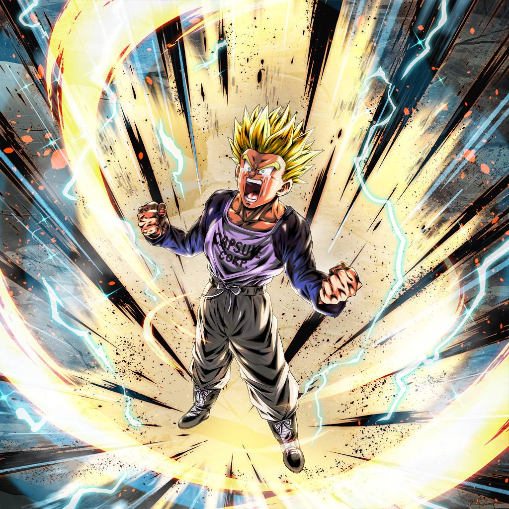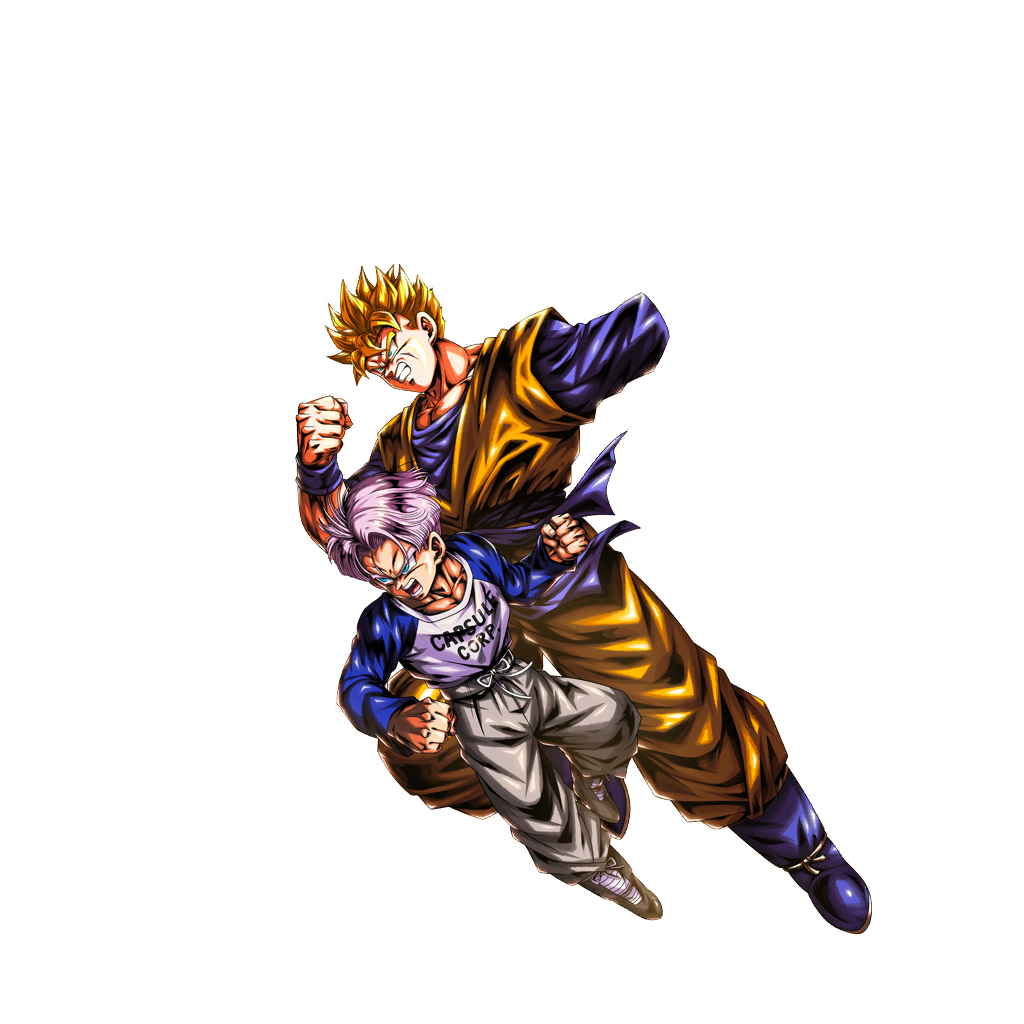 Cambio de Gohan supersaiyajin & Trunks chico a Trunks chico con 80% de salud propia cuando esta llega a 0, y transformación en supersaiyajin * Serás abatido si tu salud llega a cero debido a un ataque de Autodestrucción del enemigo * En caso de ejecutar la Sucesión en la tierra, te desplazarás al aire Infunde los siguientes efectos propios al comienzo de la lucha: · 90% de aumento del medidor único · Medidor de relevo +60% · Daño infligido +170% (inamovible) · Daño recibido -70% (inamovible) · Daño contundente, explosivo y cortante recibido -10% (inamovible) · Velocidad de robo de cartas de destrezas +1 (inamovible) · Coste de todas las destrezas -5 (inamovible) Infunde los siguientes efectos cada vez que confrontas a un enemigo: · Ki propio +20 · Daño infligido propio +10% (10 s) · Anula la desventaja de afinidad del daño recibido propio (5 s) (inamovible) · Infunde al enemigo Velocidad de robo de cartas de destrezas -1 (5 s) como degradación de habilidad Infunde los siguientes efectos propios cada vez que usas cartas de destrezas: · Daño infligido +10% (inamovible) (cinco veces) * El número de veces se comparte entre Gohan y Trunks chico · Daño infligido +10% (10 s) Anula los ataques de destrezas singulares de tipo área del enemigo cuando te encuentras bajo las siguientes condiciones (una vez): · Cuando no estás haciendo nada o te desplazas deslizando · Cuando estás realizando un paso hacia la izquierda o la derecha · Cuando estás recibiendo un ataque * Excepto cuando estás en un estado alterado o en una condición especial por determinadas destrezas * Excepto durante el Cambio Protector