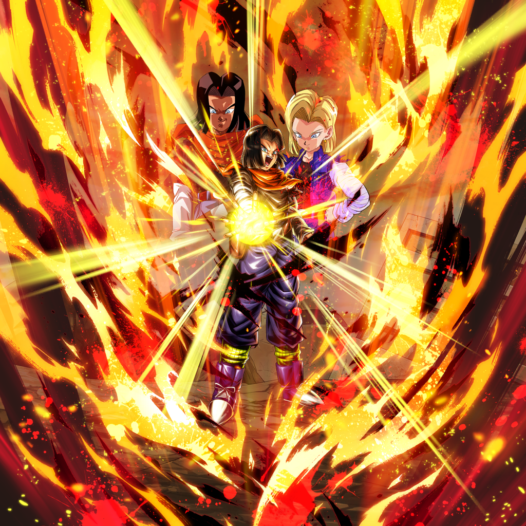 Infunde los siguientes efectos propios al comienzo de la lucha: · Daño infligido +120% (inamovible) · Daño especial infligido +30% (inamovible) · Daño recibido -70% (inamovible) · Daño contundente recibido -10% (inamovible) · Velocidad de regeneración de ki +30% (inamovible) · Velocidad de robo de cartas de destrezas +1 (inamovible) · Coste de destrezas de energía -10 (inamovible) · Coste de destrezas especiales -5 (inamovible) Además, infunde los siguientes efectos propios si hay algún luchador Androide Nº18: · Daño infligido +30% (inamovible) · Al atacar, anula el efecto del enemigo de Recuperación de salud cuando esta llega a cero (inamovible) Infunde los siguientes efectos al entrar en la lucha: · Ki propio +30 · Daño infligido propio +90% (inamovible) (una vez) · Infunde refuerzo de estado propio que anula la acción especial del enemigo durante su Cambio Protector (5 s) · Tiempo de espera -1 s para aliados · Infunde al enemigo Potencia de destrezas físicas, de energía y especiales -10% (15 s) como degradación de habilidad · Infunde al enemigo Velocidad de regeneración de ki -30% (15 s) como degradación de habilidad Infunde los siguientes efectos propios cuando aciertas con destrezas físicas o de energía: · Roba carta de destreza singular (una vez) · Daño infligido de siguiente destreza especial o definitiva +10% (30% máximo)