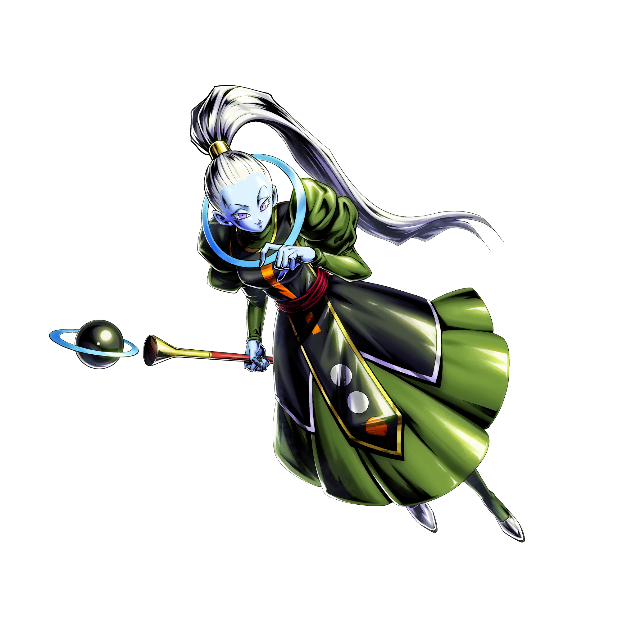 Infunde los siguientes efectos propios al comienzo de la lucha: · Daño infligido +80% (inamovible) · Daño recibido -60% (inamovible) · Velocidad de regeneración de ki +80% (inamovible) · Velocidad de robo de cartas de destrezas +1 (inamovible) Infunde los siguientes efectos al entrar en la lucha: · Cancela degradaciones de habilidad propias · Destrucción de una carta del enemigo al azar · Sella las destrezas singulares del enemigo Las destrezas selladas no pueden ser ejecutadas durante un tiempo (5 s) · Sella la Cadena Devastadora del enemigo (5 s) · Inflige a todos los enemigos Bloqueo de habilidad principal (5 s)