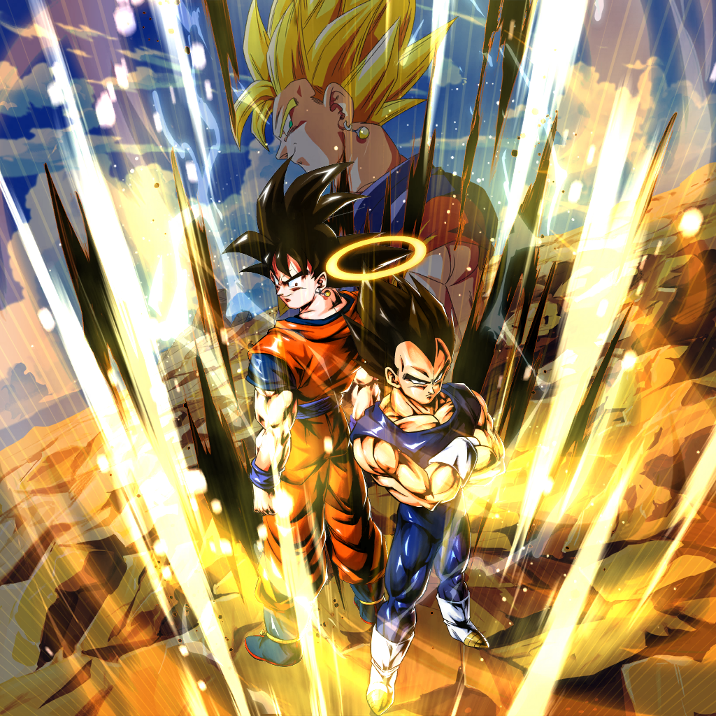 Infunde los siguientes efectos propios al comienzo de la lucha: · Daño infligido +100% (inamovible) · Daño recibido -70% (inamovible) · Velocidad de robo de cartas de destrezas +1 (inamovible) · Anulación de entrada en degradaciones de habilidad (60 s) (inamovible) Infunde los siguientes efectos al entrar en la lucha o cuando el personaje entra con un relevo: · Robo de una carta al azar si tienes tres cartas o menos · Ki propio +20 · Medidor de relevo propio +20% · Daño infligido propio +80% (inamovible) (una vez) · Daño infligido propio de destrezas físicas y de energía +30% (15 s) · Infunde al enemigo Velocidad de robo de cartas de destrezas -1 (10 s) como degradación de habilidad Además, Medidor de sincronización propio +100% si hay algún luchador abatido (una vez) * El número de veces se comparte entre Vegeta y Goku Infunde los siguientes efectos propios si el enemigo cambia de luchador cuando estás en la lucha: · Roba carta de destreza singular (una vez) · Anula la desventaja de afinidad (3 s) Ki propio +10 al robar cartas de destrezas cuando estás en la lucha Destrucción de todas las cartas del enemigo cuando recibes un ataque de destreza del enemigo si tienes 50% o menos de salud restante cuando estás en la lucha (una vez) * El número de veces se comparte entre Vegeta y Goku Tiempo de espera -5 s para aliados cuando el enemigo ejecuta destrezas definitivas o despertar, o Cadena Devastadora cuando estás en la lucha